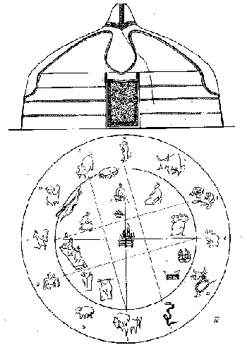 Astronomy was one of the well developed sciences in Mongolia. In fact in 1428 Ulugbeg (1394-1449), son of Taragai, grandson of Tomor of Barlas clan built an observation station in Samarkand. This fascination with stars and planets reflects in the structure of the Mongolian gers. The basic 4 khana ger has 14 heads (poles on each khana) and 4 poles' heads on the door. This coinsides with modern clock structure. The space between poles is more or less 6 degrees. The pole space on khanas represents 60 years: the right most pole space on the door is blue male horse year, the north most pole space is blue male rat year, the very first pole space on khana on the south west is blue female ship year, the 14th (last space for the first khana) space is yellow male monkey, and the second khana starts with red female rooster year and ends with black male dog year, the third khana starts with black female pig year, and ends with red male rat year, 4th khana starts with red female ox year and ends with white male tiger year. The morning starts at rabbit time (6 a.m.), then dragon time (8 a.m.), snake (10 a.m.), horse (12 p.m.), sheep (2 p.m.), monkey (4 p.m.) and rooster (6 p.m.). Since Mongolians used to face the door to southeast it is 6-12 degrees tilted from the pole so the first sunlight showes around 6:48 a.m. This relates to having 4 seasons in that region.